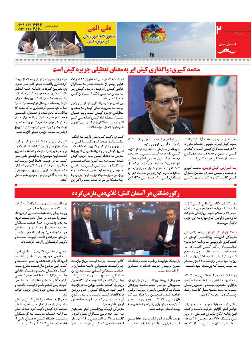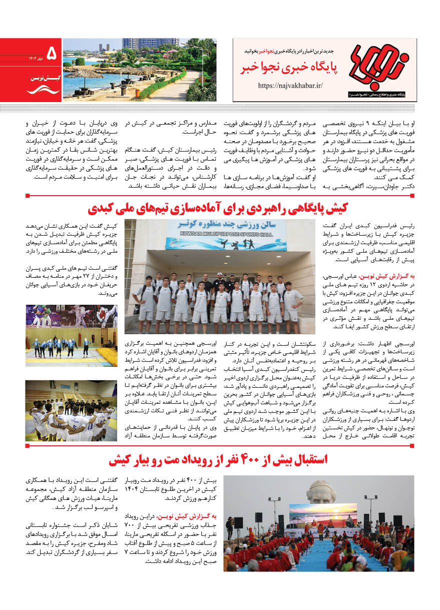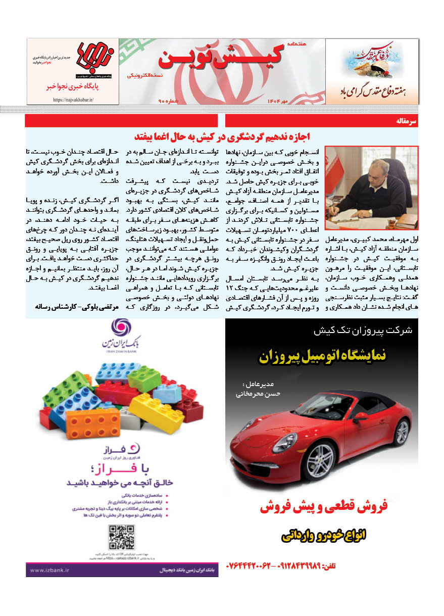 1404 شنبه 5 مهر نسخه چاپی هفته نامه کیش نوین منتشر شد هفته نامه کیش نوین (مهر 1404) منتشر شد. Facebook Twitter Linkedin Whatsapp Pinterest Email