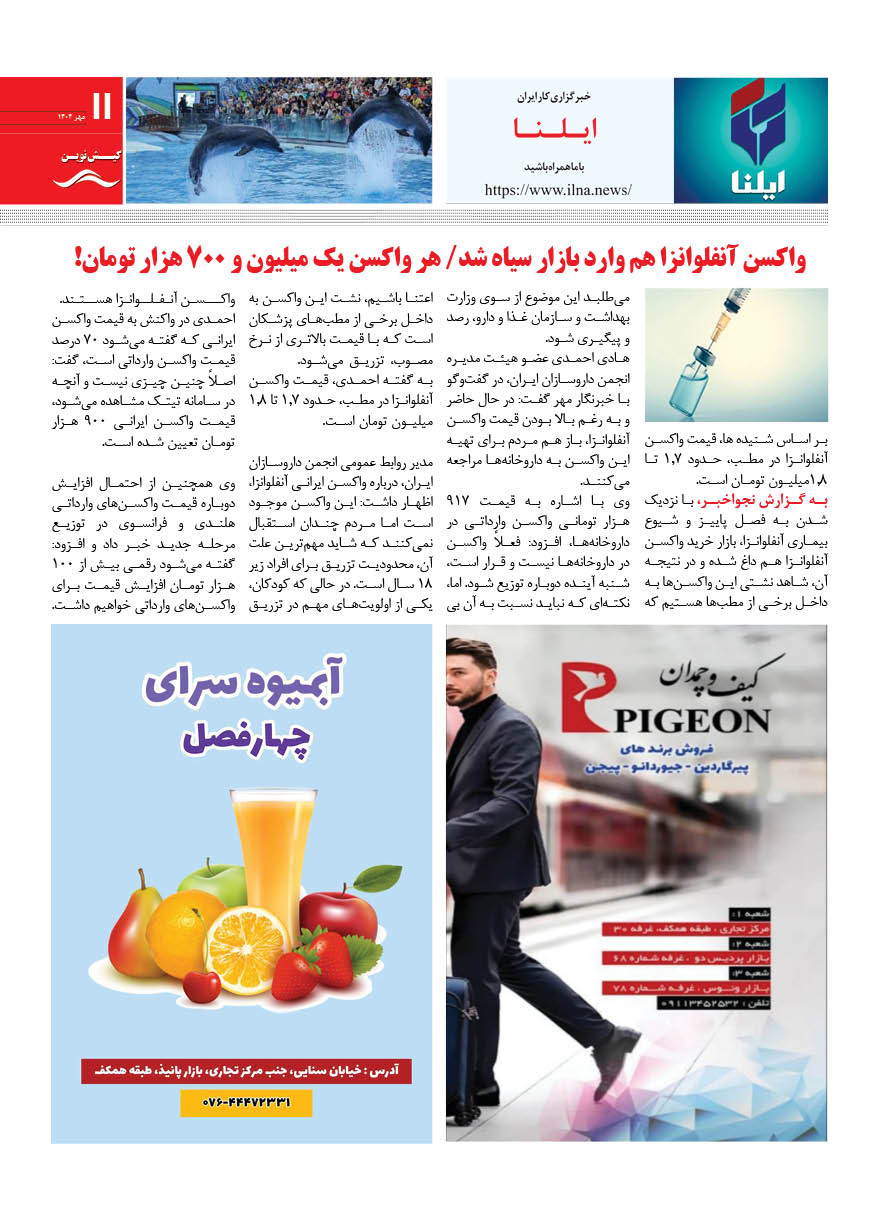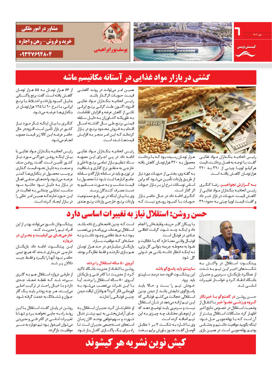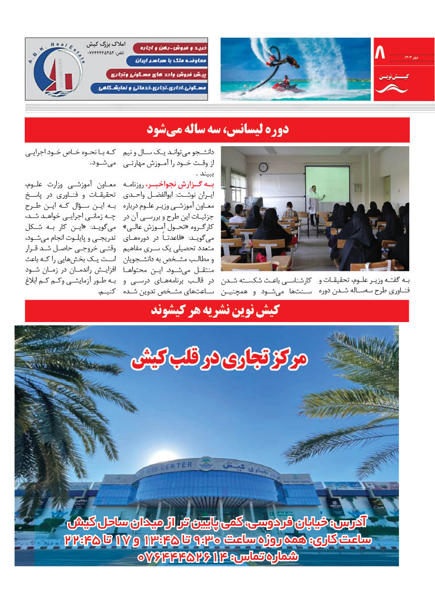 1404 شنبه 5 مهر نسخه چاپی هفته نامه کیش نوین منتشر شد هفته نامه کیش نوین (مهر 1404) منتشر شد. Facebook Twitter Linkedin Whatsapp Pinterest Email