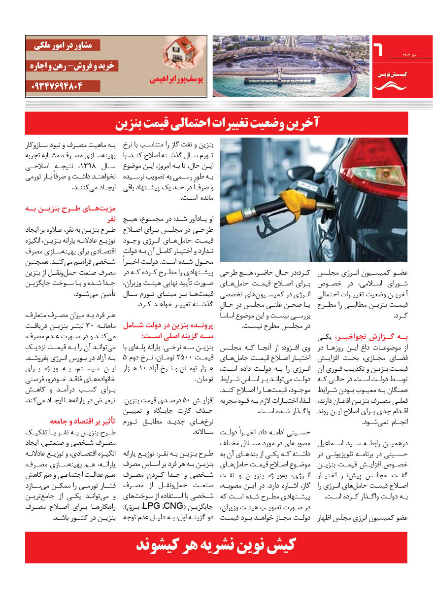 هفته نامه کیش نوین (مهر 1404) منتشر شد.