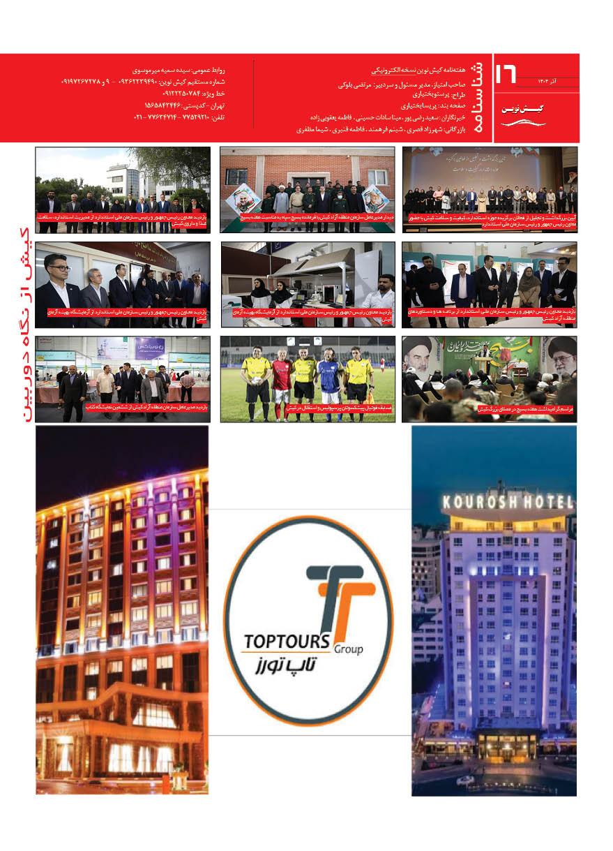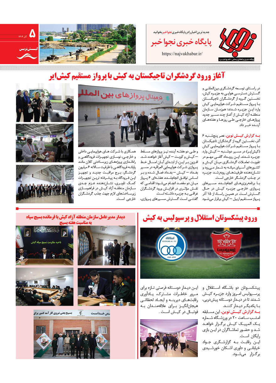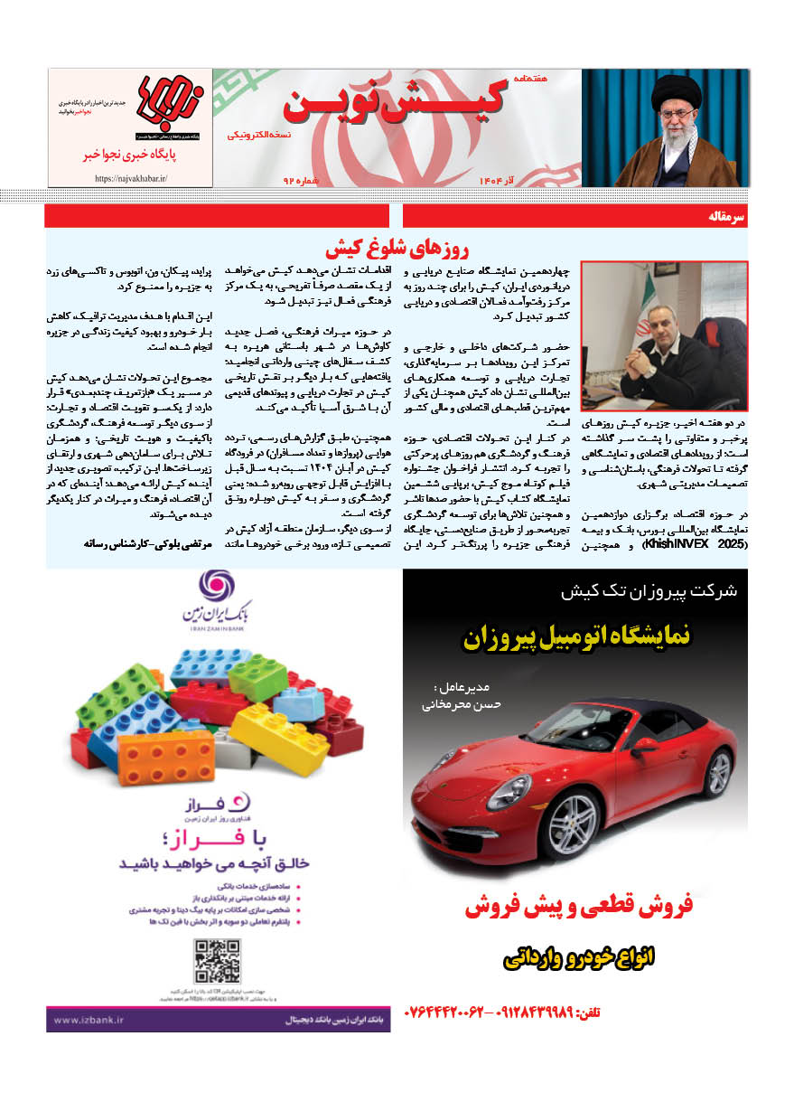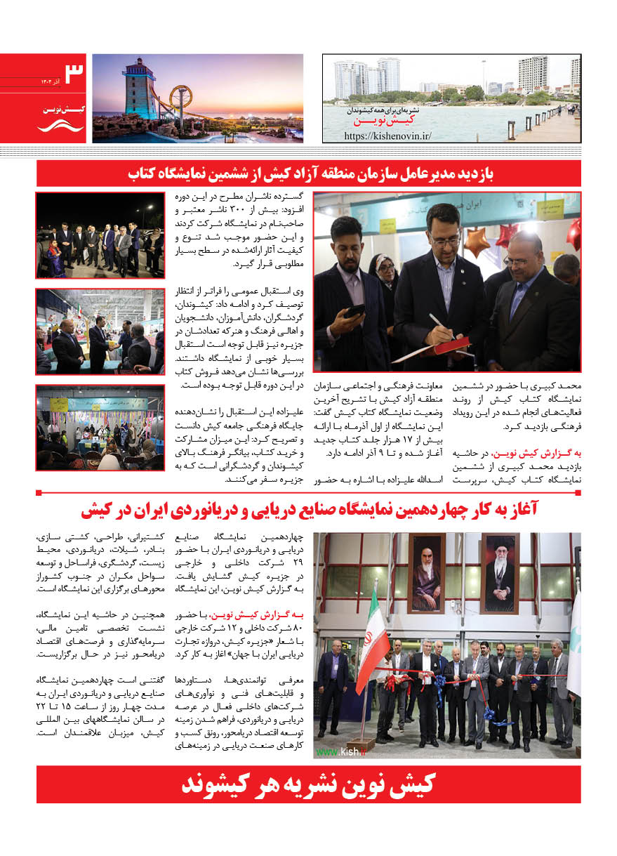 1404 چهارشنبه 12 آذر نسخه چاپی هفته نامه کیش نوین منتشر شد هفته نامه کیش نوین (آذر 1404) منتشر شد. Facebook Twitter Linkedin Whatsapp Pinterest Email