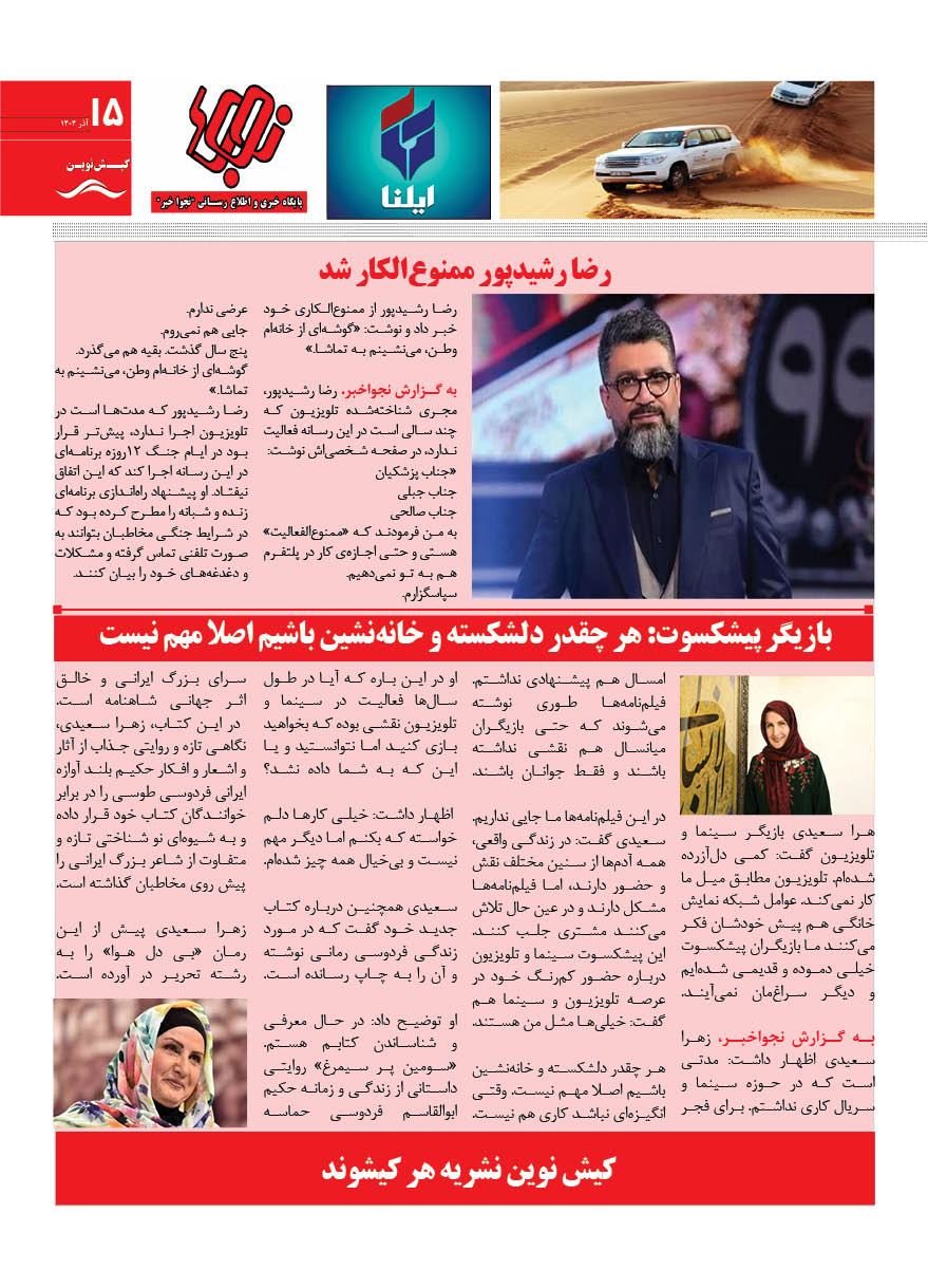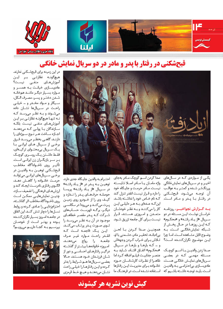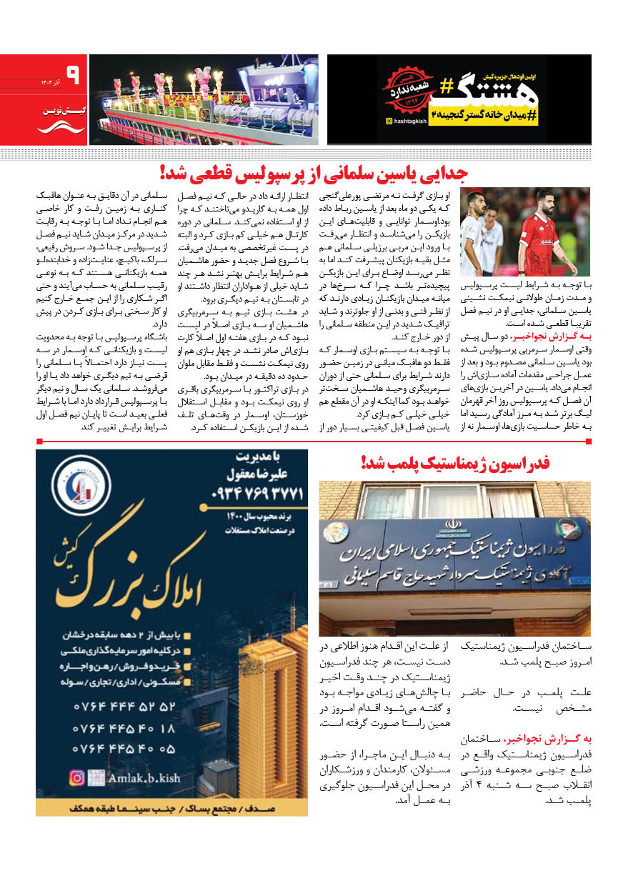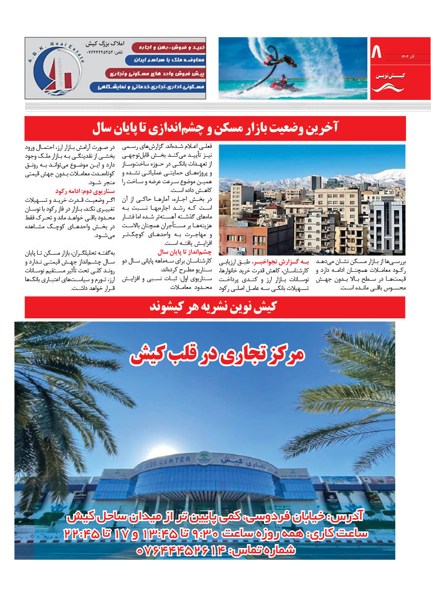 1404 چهارشنبه 12 آذر نسخه چاپی هفته نامه کیش نوین منتشر شد هفته نامه کیش نوین (آذر 1404) منتشر شد. Facebook Twitter Linkedin Whatsapp Pinterest Email
